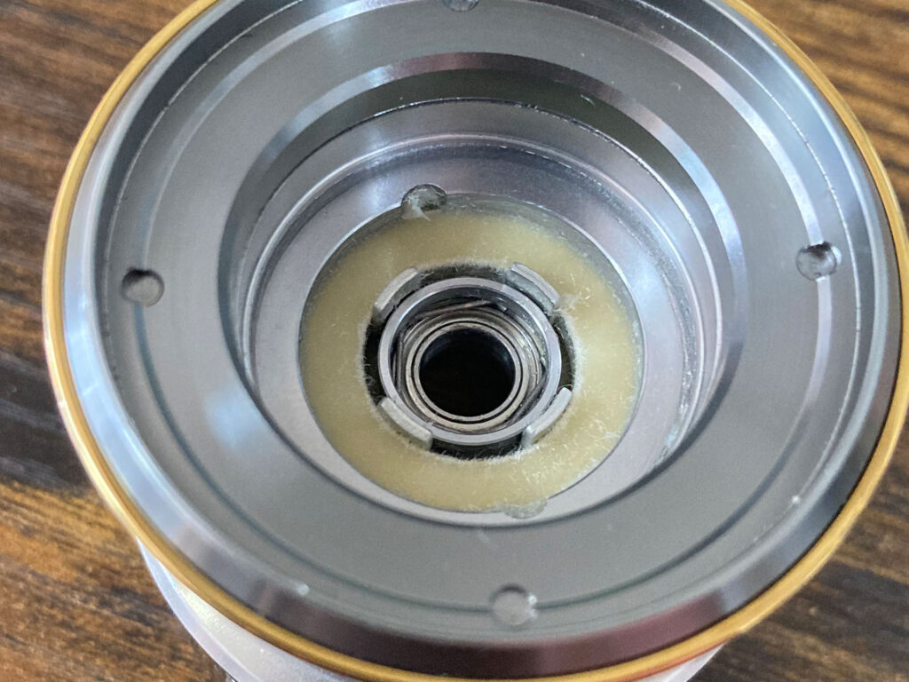 ベイトリールのメインギアを挟むように組み込まれているドラグワッシャー用のグリスになります。